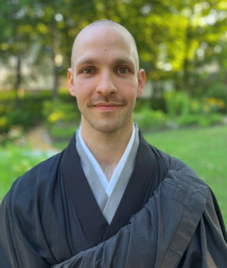 Rev. Shinkyu Brian Coté was a resident at NZC from June 2024 through January 2025. He met his teacher, Rev. Shuji Valdene Mintzmyer, of Just Sit Zendo in Grand Rapids, MI, in 2019. In 2020 he received jukai from her, followed by lay entrustment in 2022. He began giving dharma talks to the Just Sit Sangha, the Grand Rapids Buddhist Temple, and the Nebraska Zen Center. In 2023 Shinkyu officially joined the Grand Rapids Buddhist Temple as a dharma teacher and a member of the Dharma Council, where he was responsible for giving talks, shaping the education calendar, and teaching classes. In 2024 Shinkyu received shukke tokudo, or home leaving ordination, from Rev. Shuji. Afterward he completed a short stay at the San Francisco Zen Center as a guest student.